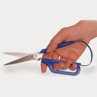 Scissors hurt.  I found these babies online and love them.  My hand doesn’t cramp.  Not as comfy as regular scissors (when my hand is normal size) but overall, a good aide.