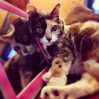 I never had a cat as a kid. Growing up we were a dog family. My dad always wanted to get a cat, but my mom had a fear of felines. I always swore that I would get a cat at some point. I bought my home in 2003 and ended up with a mouse. Freaked me out so much, that I went to the SPCA and adopted Lola. Lola is a calico tabby. She was the cutest and snuggliest kitten. Even my mother fell in love. She had a serious personality shift after she was spayed. My cuddly kitten turned into a nasty girl to everyone else but me (although she often dishes out her nastiness to me in terms of hisses and scratches). I learned to have a healthy respect of Lola’s personality. I couldn’t pet her too much without being bit. I couldn’t hold her for longer than a minute without being scratched. At night, however, I was her pillow and she’d purr and snuggle to her heart’s content.