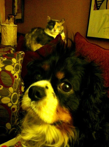 Lola tolerated the stray cat that I brought into the house in 2005. Isabella was a hunter and I could never safely leave them unattended in the house. Lola’s heart broke when I had to make her the “downstairs” cat, while Isabella then began to sleep with me. In 2009, I brought a puppy named Georgia home. Lola looked at the puppy with disdain, but they eventually developed a love/hate relationship similar to siblings. Eventually, Isabella moved in with my parents (she is better off as an only cat and now mom is a cat person, dad is thrilled) and Georgia & Lola became a dynamic duo. In 2011, Georgia was diagnosed with syringomyelia. Before this diagnosis, Lola, who never allowed Georgia to touch her, let Georgia lay her head on her back. Lola never left her side. To this day, when the cat is nice to Georgia, I know it means something is wrong with the dog.