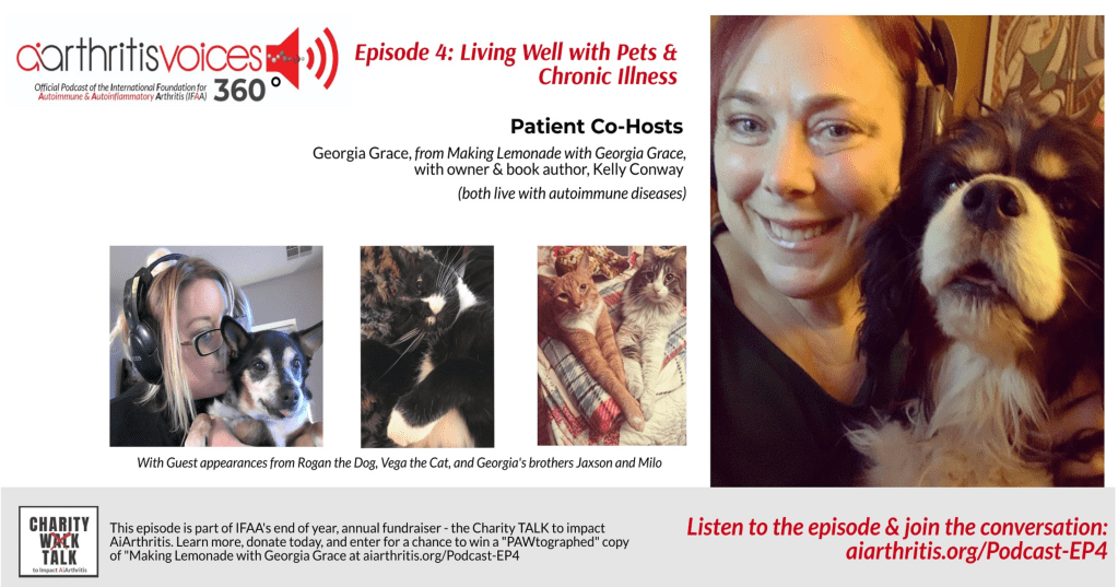 I was recently asked to have Georgia (my dog) co-host The International Foundation for Autoimmune & Autoinflammatory Arthritis’s AiArthritis Voices 360 podcast. The reason being, we wanted to discuss how important pets are to people living with chronic illness.