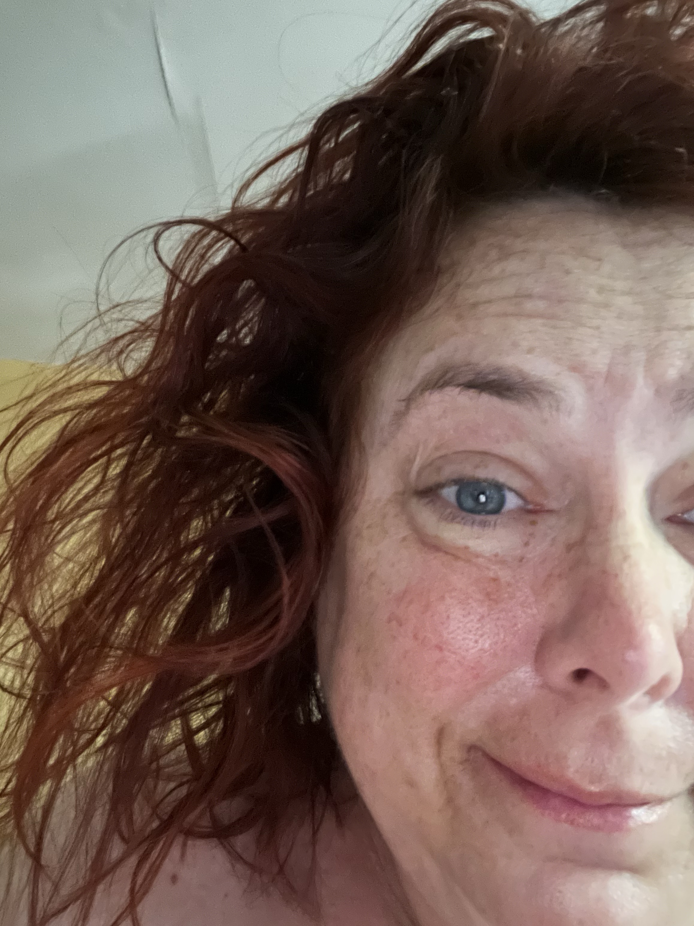 Now that the fever portion of this illness is under control, I’m dealing with pneumonia. My chest aches from the coughing. It’s so hard to sleep that I have turned off my phone. Once I get to sleep after fitful coughing, I can’t afford to be woken up. Sorry for people who worry when I don’t answer. I can’t worry about others feelings when I have to worry about getting myself better and that requires sleep. Between the fever sweats (which does amazing stuff with my hair!)
