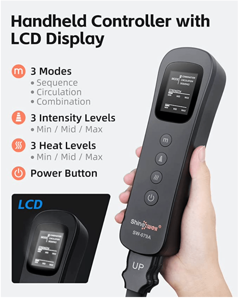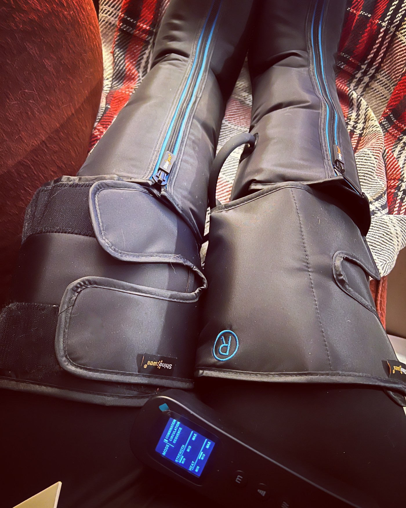 That said, I decided to take advantage of my flex spending bank account and invested in some devices to help alleviate my pain. The first item I got was heat and compression boots to help with circulation and pain relief. Years ago, I broke my leg and after physical therapy, my PT would put my legs in compression boots and it ended up being the best 20 minutes of my day. I still work full time and by the time I get home, my joints are painful and my calves and feet are horribly swollen. I did a bit of research and found an FSA (able to be purchased through my flex spending funds) eligible compression boot kit. I purchased the Shine Well Massager with Heat Compression from Amazon.